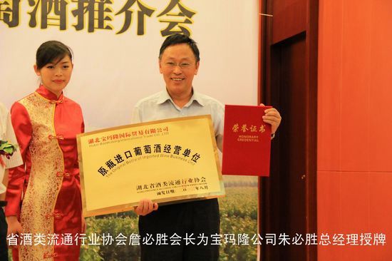 2012年9月15日,由湖北省供销合作总社、湖北省酒类流通行业协会联合主办的“2012年宝玛隆原瓶进口葡萄酒推介会” 在武汉循礼门饭店隆重举行。省商务厅、省供销合作总社、省酒类专卖管理局、省酒类流通行业协会、武汉东西湖保税物流中心管理委员会等单位有关领导以及宝玛隆公司近两百家优质经销商出席了会议。