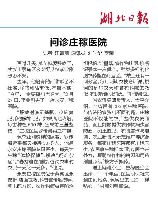 湖北日报4月8日讯:问诊庄稼医院