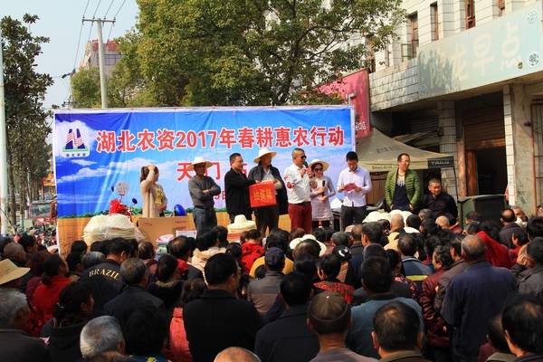 3月9日,湖北农资2017年春耕惠农行动暨农业科技服务下基层活动在天门市岳口镇正式启动。此次活动由湖北楚丰农资连锁有限公司具体承办,包含广播宣传、农技推广、惠农促销、庄稼医生培训和试验示范田建设等多项内容,活动持续3天,覆盖了天门市岳口镇、彭市镇及仙桃市郑场镇等5个乡镇,现场服务农民达800余户。其中,岳口镇主会场设置了促销抽奖、惠农物资发放和农技讲解等多个环节,吸引农民500余人,让利促销“湖北农资”旗下系列复合肥180余吨,现场销售40余万元,活动取得圆满成功。