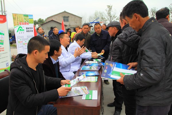 活动还邀请了潜江富来地和长江大学农化服务专家,设立咨询台,发放宣传科普资料,就辨识假劣农资和选购放心农资、如何科学施肥用药以及“稻虾共作”养殖等内容进行了宣传解答和技术指导。咨询现场气氛活跃,活动期间约150人次前来咨询,受到当地农民群众的肯定和好评。
