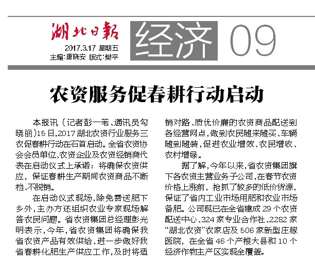 3月17日《湖北日报》讯:农资服务促春耕行动启动