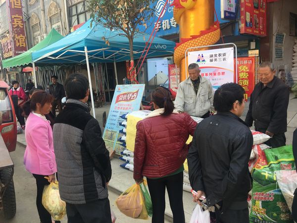 3月28日-29日,应随州当地广大农户要求,“湖北农资2017年春耕惠农行动(随州站第二期)”在随州市青苔镇举行。目前正值春耕备耕的关键时期,广大农民购肥积极性普遍高涨,该活动覆盖了随州市青苔镇余家岗、朱家塆、板家塆等多个村落,服务农民达200余户,现场让利促销自有品牌“德福隆”系列产品30余吨,达到预期效果。目前,“湖北农资2017年春耕惠农行动暨农业科技服务下基层活动(松滋站)”正在紧锣密鼓的筹备中,4月1日将在松滋市八宝镇隆重举行。