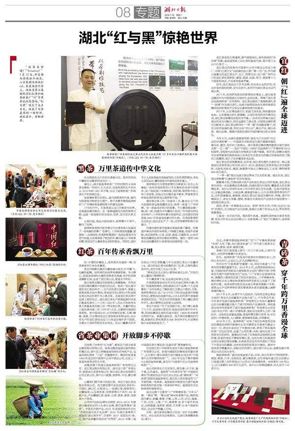 如今,宜红茶业这个百年品牌,加快走出去的步伐,在近年来的国际经贸、文化交流中,多次作为湖北茶业企业代表出席。
