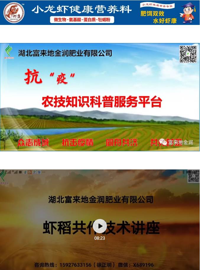 不扎堆、不聚集,由线下沟通变为线上交流,像这样的线上农技指导培训,潜江富来地已开展了12场。疫情期间,徐正明和公司农化服务团队发挥专业特长,先后讲授了水稻、葡萄、柑橘等作物栽培技术以及小龙虾养殖春季管理多项内容,不仅帮助农户提供作物解决方案,还加快了小龙虾营养料等新型肥料推广应用的步伐,直接服务经销商客户150人次,服务农户800余人次。