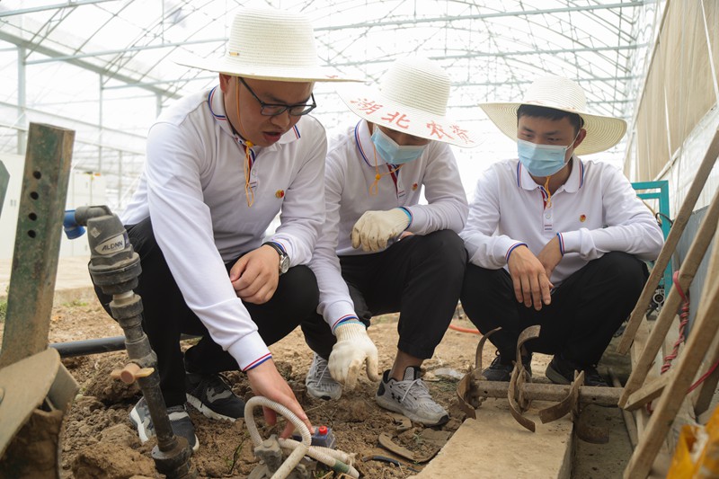 青年员工体验滴灌施肥