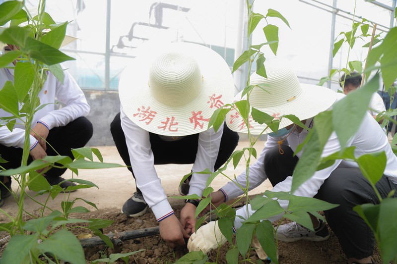 “湖北现代农业展示中心,以看得见、摸得着、学的会的展示方式,形成了农业科技试验、示范、培训、推广的模式......”在讲解员的带领下,广大青年员工依次参观了中心的宣传栏、池塘“零排放”圈养绿色高效循环养殖示范、现代农业展示馆等区域,实地查看了设施农业、循环农业、物联网技术的应用等展区,并分组体验了农业生产中播种、施肥、除草、剪枝、采摘等环节。