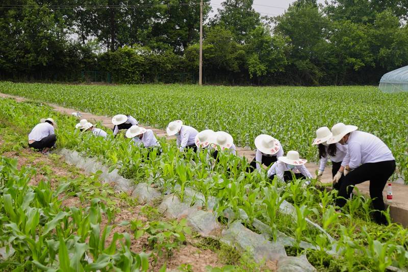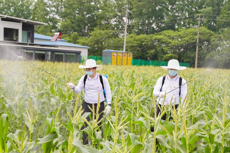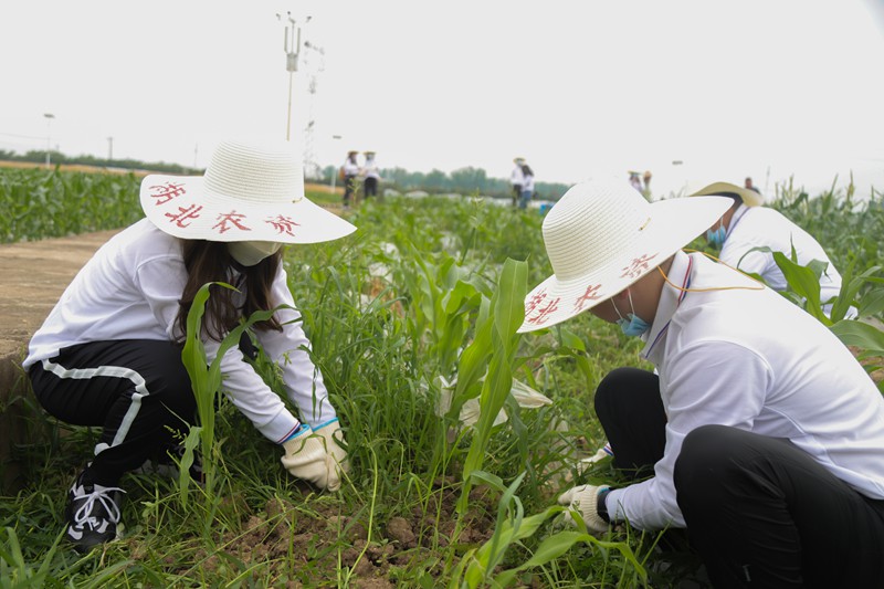 青年员工在玉米田进行除草