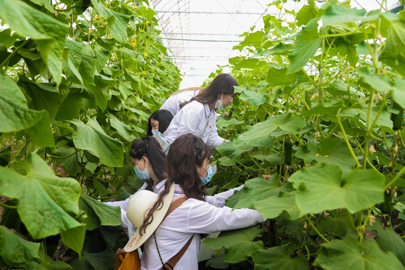 青年员工进行蔬果采摘