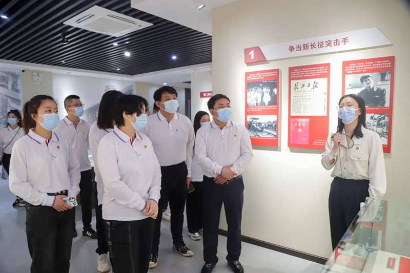 “武汉是全国最早建立共青团组织的城市之一,在中国青年运动史上扮演着重要的角色......”团校老师在武汉青年运动史陈列展上为青年员工耐心讲解。大家通过文物资料和历史图片,深入学习了解了武汉青年在新民主主义革命时期、社会主义革命和建设时期、改革开放和社会主义现代化建设时期、走进新时代四个历史阶段,敢为人先,追求卓越,奉献青春的奋斗历程。青年团员代表面对团旗重温入团誓词,进一步坚定不忘初心跟党走、牢记使命勇担当的理想信念。
