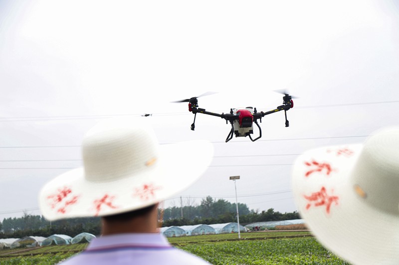 青年员工操作无人机施