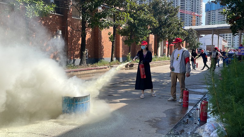 本次演练以实战方式开展,火灾场景模拟一租户电线短路起火,及时启动应急预案并顺利将火势扑灭的全过程。活动现场,通讯组第一时间上报火情,行动组利用干粉灭火器和消防栓压制火势,引导组指挥人员有序向外疏散,最后与模拟演练出警的消防中队协同行动,彻底扑灭“火灾”。全流程的综合演练,达到了检验预案、完善准备、锻炼队伍、磨合机制、科普宣教的预期目标。