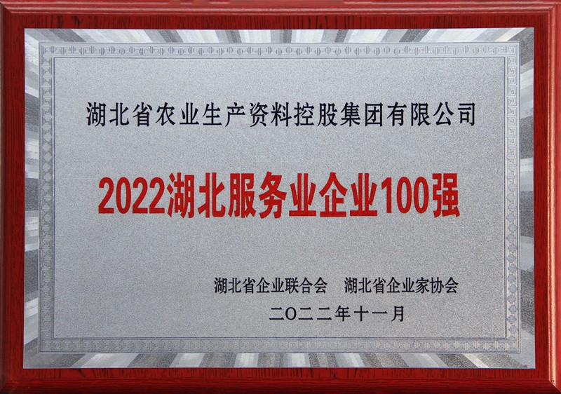 近日,湖北省企业联合会、湖北省企业家协会共同发布了“2022湖北企业100强、湖北制造业企业100强、湖北服务业企业100强”榜单,农资控股开元足球登录荣登“2022湖北服务业企业100强”榜单,位列第44名。