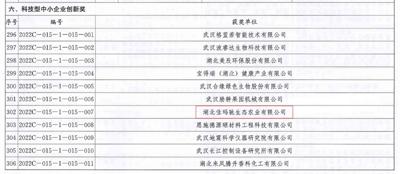 3月16日,湖北省科技创新大会在武汉洪山礼堂举行。会议公布了《湖北省人民政府关于2022年度湖北省科学技术奖励的决定》,农资控股开元足球登录旗下湖北佳玛驰生态农业有限公司荣获“湖北省科技型中小企业创新奖”,在科技创新方面再获殊荣。
