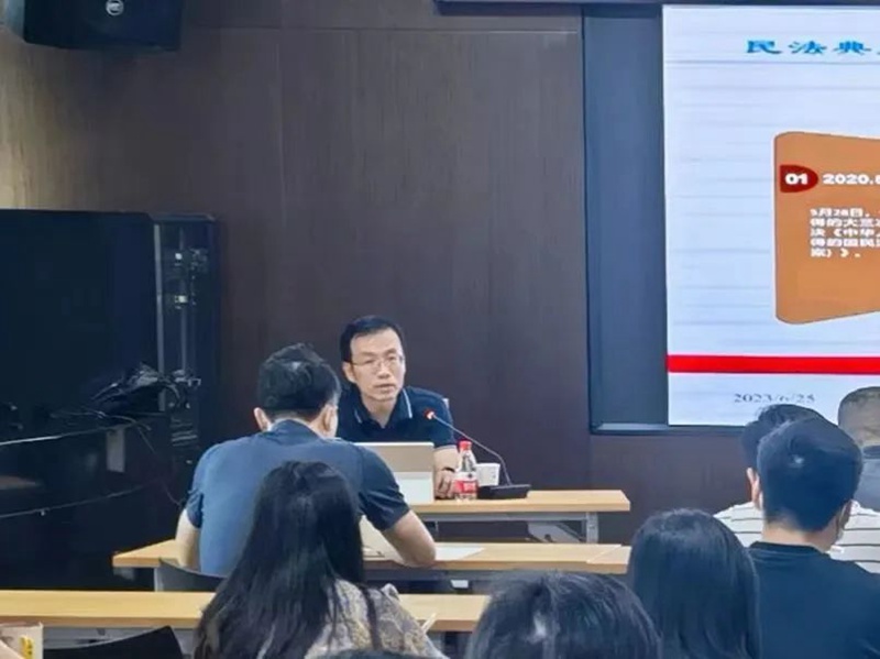 本次培训特邀湖北天明律师事务所律师、法学博士程松亮进行授课。程博士以“‘典’亮美好生活”为主题,围绕合同的订立、情势变更和不安抗辩权等9个方面内容,对《民法典》合同编进行了详细讲解,并以最高院指导案例为样本,对《民法典》相关法条的具体运用进行了剖析。培训现场还进行了答疑解惑。