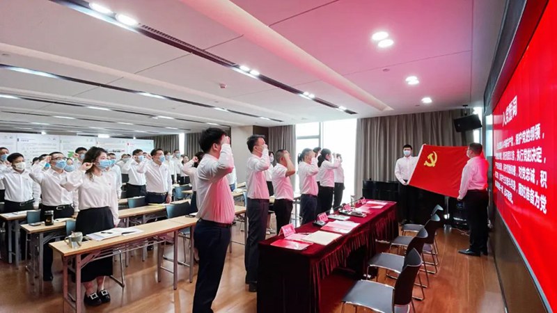 会议在庄严的国歌声中拉开序幕。面朝党旗,詹良、丰敏聪等3名新党员进行入党宣誓,全体党员重温入党誓词。