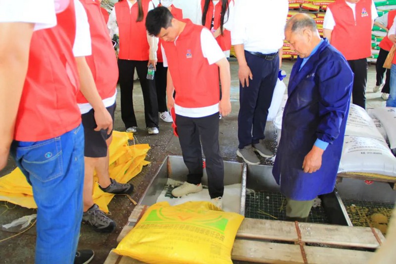 在天门配肥站,生产负责人斯令军带领青年团员们亲身体验了设定配方、原料投放、产品装包、肥料搬运等配肥生产环节。通过学习,大家充分认识到合理施肥、科学施肥重要性,初步了解掌握了“测土、配方、配肥、供应、施肥指导”等环节知识。