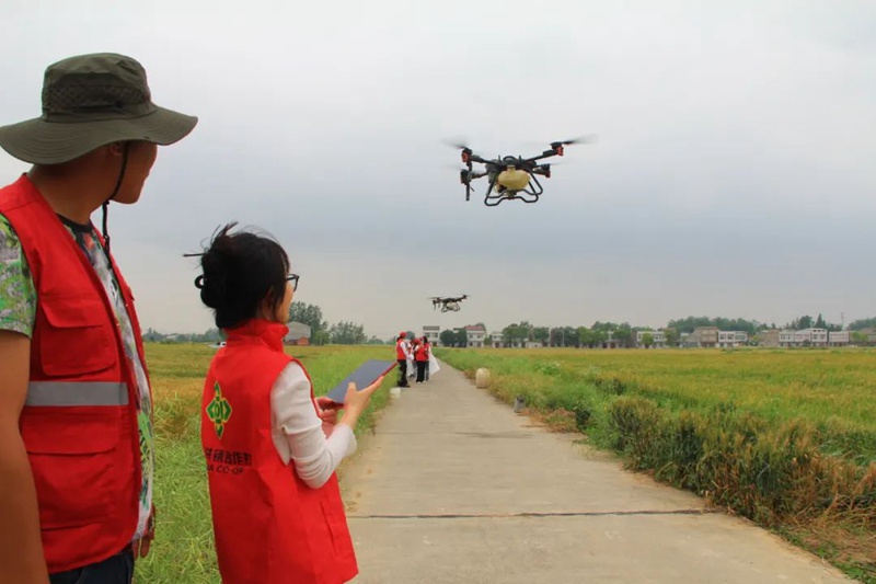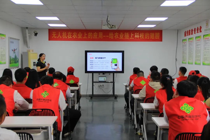 在天门市大黄蜂植保服务专业合作社,负责人蒋明兰为青年团员详细讲解了农业无人机的应用,演示了无人机的服务模式、数据监控平台以及施肥、撒药、灌溉等应用场景。随后,青年团员们深入田间地头,学习体验了田间测绘、参数设置、飞行作业等农业无人机田间作业流程,让大家切身感受到智慧农业在降本增效、节肥减药、扩面提质方面的优势,努力为供销社综合改革和“农资链”高质量发展贡献力量。