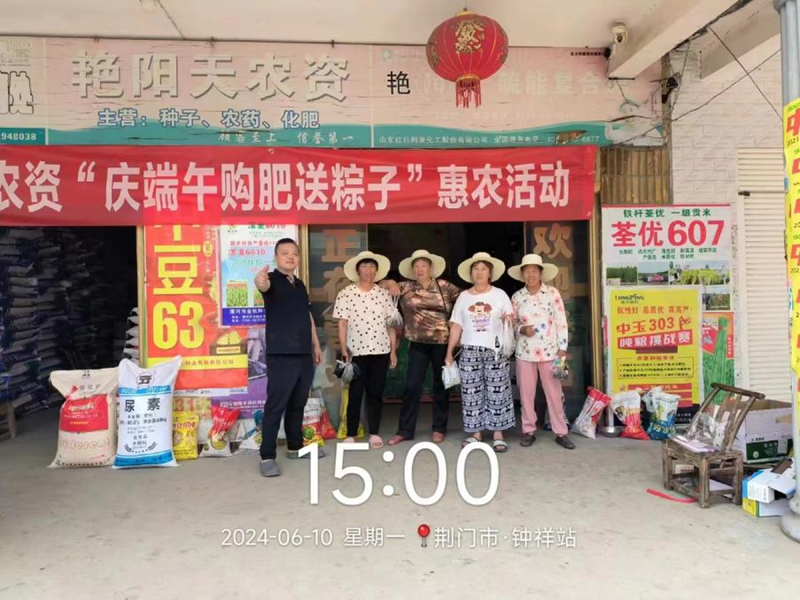 6月10日,在钟祥市旧口镇农资店门口,前来购买化肥的农民络绎不绝。“今天买肥料送粽子,优惠活动多力度大,真是实惠”,一位农户笑得合不拢嘴。端午假期,楚丰连锁公司先后在荆门、麻城等地开展“庆端午”惠农活动,为农民提供质优价廉的农资产品,现场达成复合肥订单70吨。