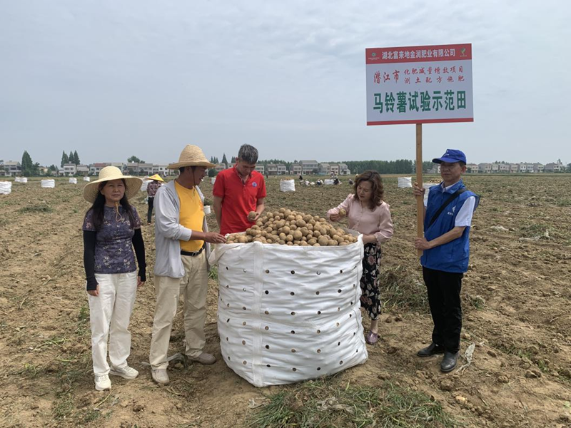 6月3日,在潜江市竹根滩镇左桥村,潜江富来地公司农化服务团队召开“马铃薯测土配方施肥示范观摩会”,经测产,单产达3900斤,比对照田块增产11%,肥料投入减少了9%。